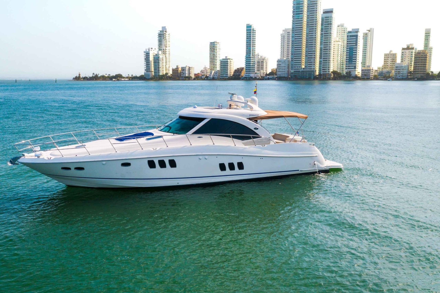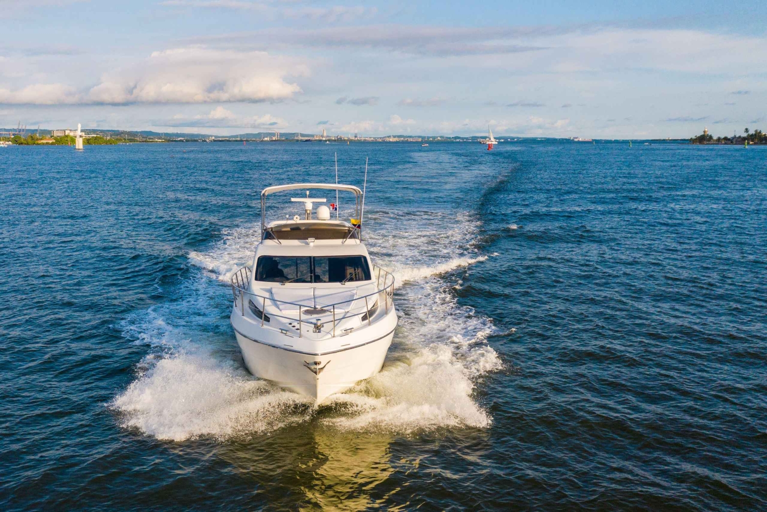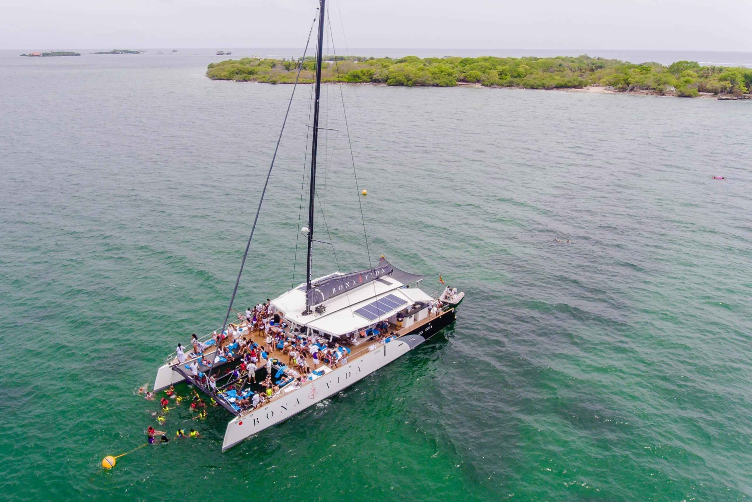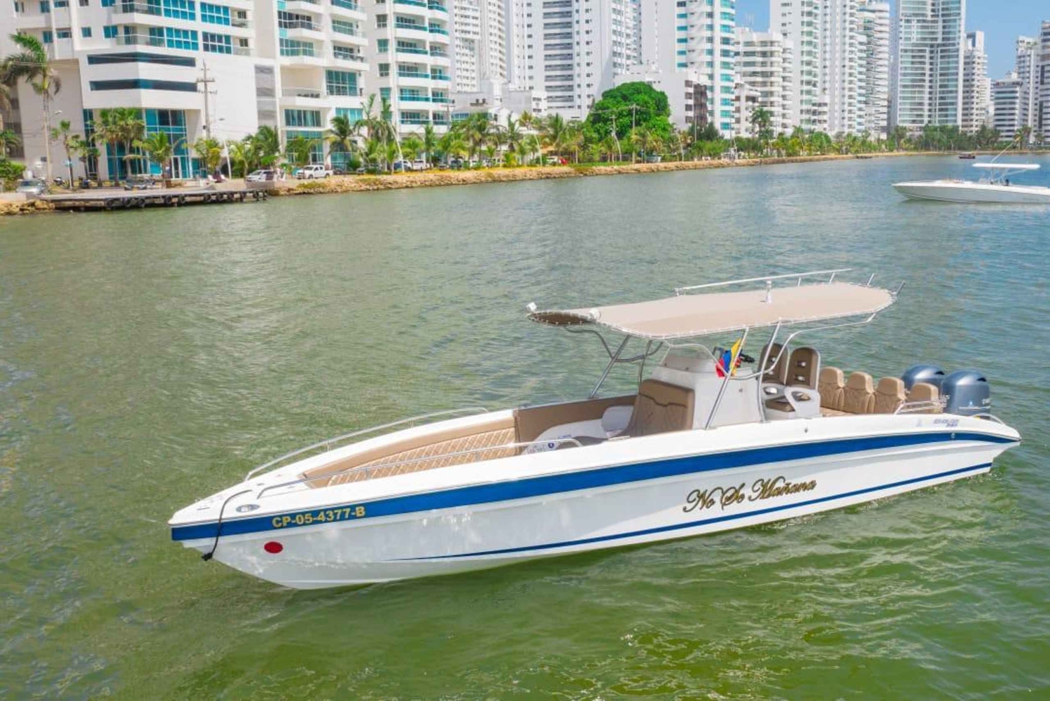 Du kan nyde denne 29-fods båd med badeværelse, skatter inkluderet, turistskatter inkluderet, den har rigelig plads. Hvis du vil gøre din tur til en virkelig uforglemmelig oplevelse, hvor du får en gåtur og panoramaudsigt over Rosario-øerne, kan du vælge, hvilken strand du vil nyde et havbad på, såsom Cholón, Agua Azul, Isla Grande, Barú, Playa Blanca.