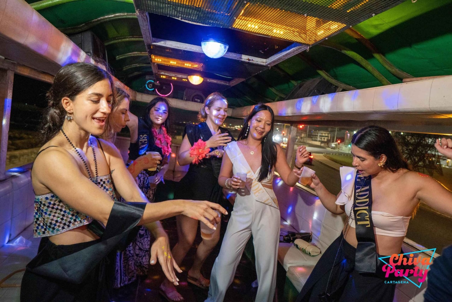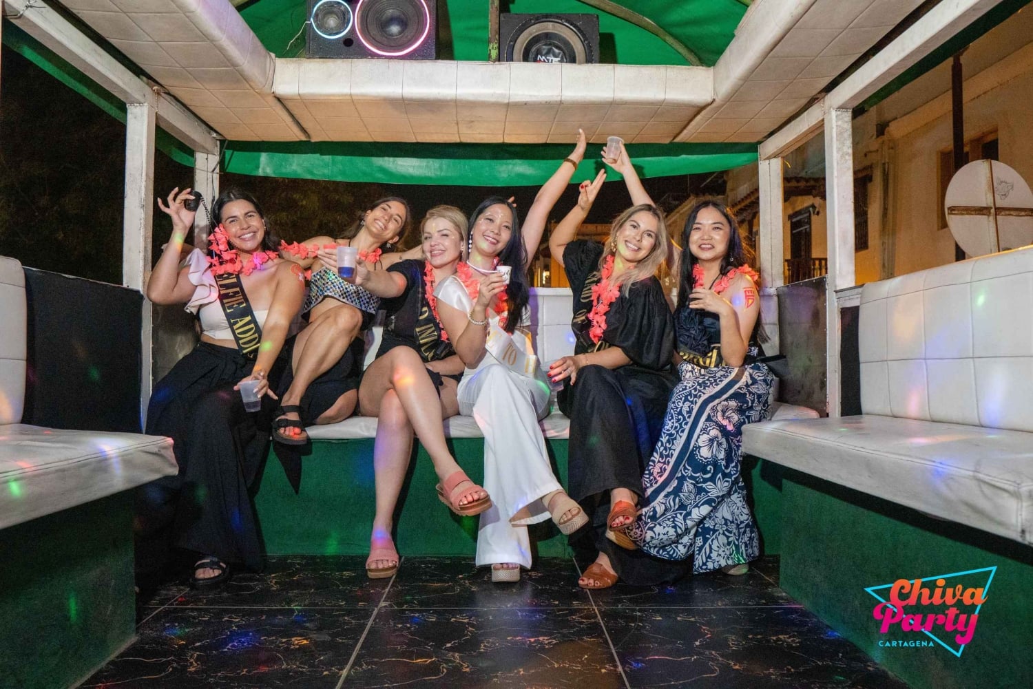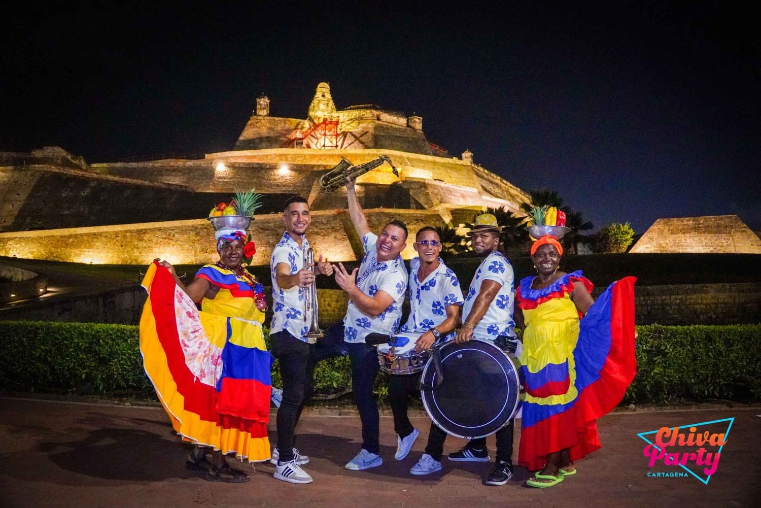 Im Preis inbegriffen: - Exklusiver Chiva für die Gruppe - Animateur - 2-stündige Tour - Hora loca (30 Minuten) - Live-Musik: Papayera - Typische Snacks aus Cartagena: Arepa de huevo, Empanadas und Carimañolas. - Zwei Palenqueras zum Tanzen und Fotografieren. - Party-Accessoires.