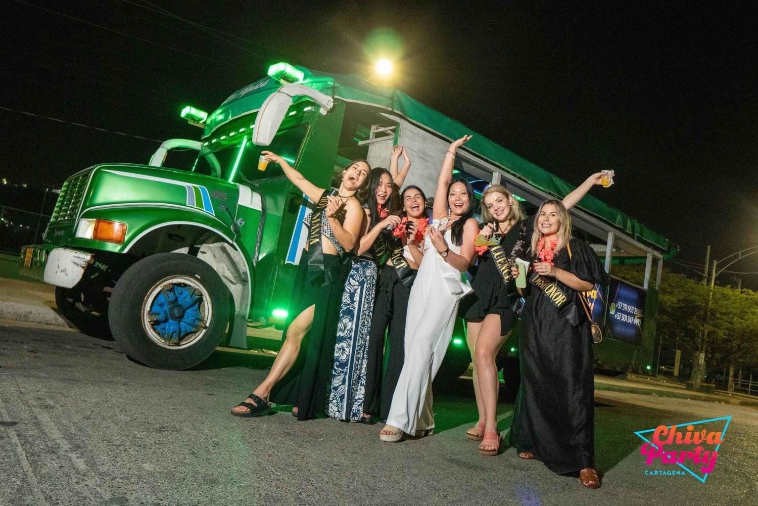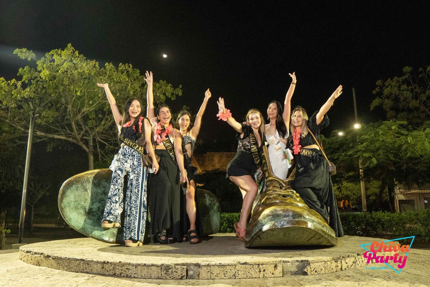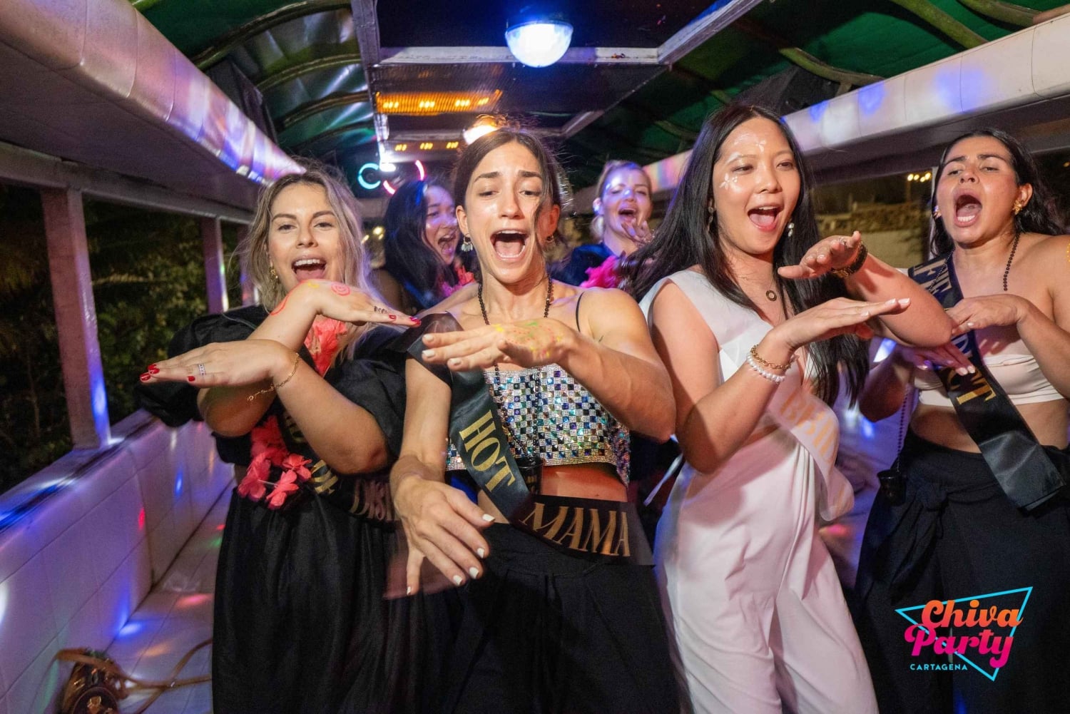 Im Preis inbegriffen: - Exklusiver Chiva für die Gruppe - Animateur - 2-stündige Tour - Hora loca (30 Minuten) - Live-Musik: Papayera - Typische Snacks aus Cartagena: Arepa de huevo, Empanadas und Carimañolas. - Zwei Palenqueras zum Tanzen und Fotografieren. - Party-Accessoires.