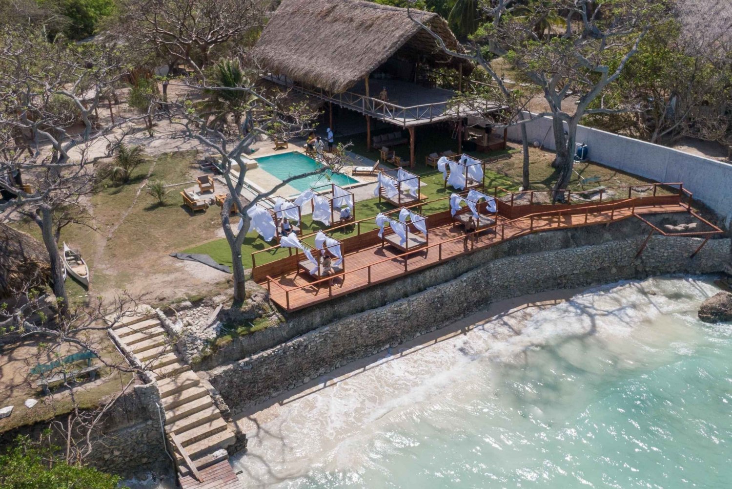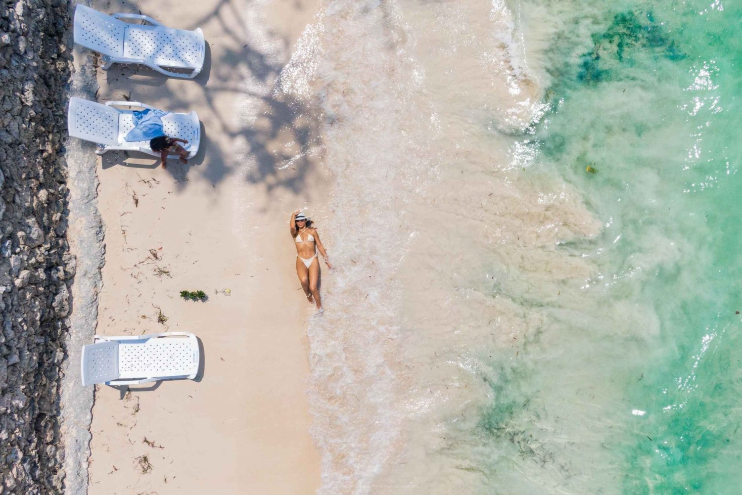 - Relax on beach beds that scream luxury.
