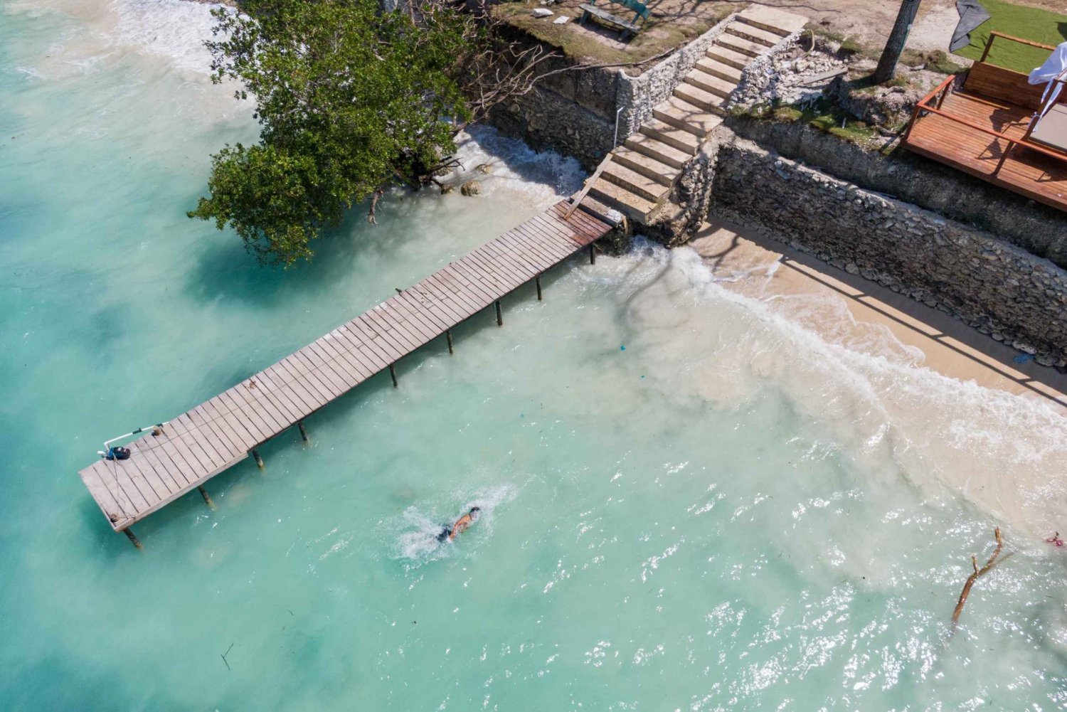 • Walk along the soft white sand or take a dip in the crystal-clear waters or our pool.