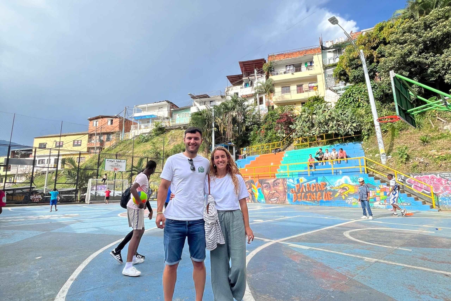 We welcome you to Comuna 13, where we will start in the Plan del Che neighborhood. We will sit on a terrace where you can get comfortable, have a drink, and enjoy a 360-degree view of the area. Right there, we will begin the story. You will learn how we went from being one of the most dangerous neighborhoods in Colombia to now being one of the most visited neighborhoods. With a photo album, we will show you its early beginnings (invasions), military operations, gangs, crime, and invisible borders. We will continue the tour in the Las Independencias 1, 2, and 3 neighborhoods of the area. As we walk, you will be able to enjoy street shows, murals with their meanings, graffiti, and viewpoints where you can take the best photos and videos for your memories. Galleries of local artists and museums will show you how art changed the lives of many young people in the area.
