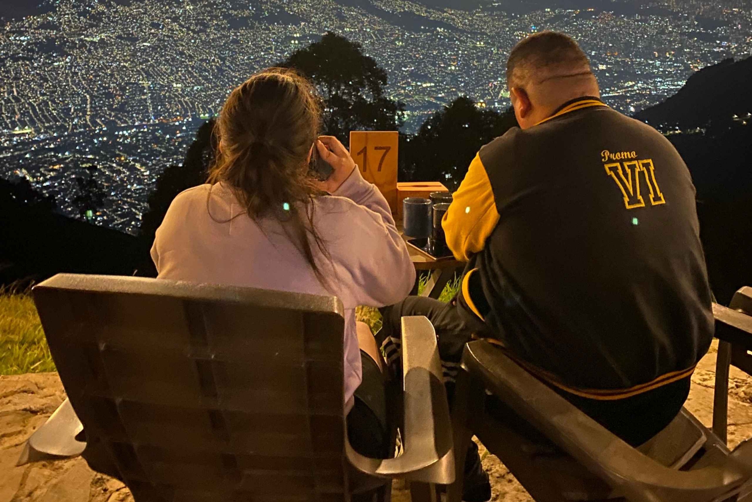 Night tour to 2 viewpoints in Medellín with a bonfire, music, and local flavor.