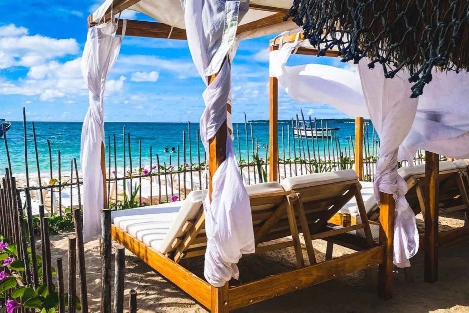 Préparez-vous à vivre l'une des expériences les plus enchanteresses de Carthagène. Le plan Sunset & Plankton au Mambo Beach Club Barú combine le meilleur des Caraïbes : un après-midi de détente face à la mer, un coucher de soleil spectaculaire et la magie naturelle du plancton lumineux. Dès que vous quittez la ville, tout est pensé pour que vous ne vous consacriez qu'à votre plaisir : transport inclus, guide bilingue et accès à l'un des clubs de plage les plus renommés de Playa Blanca.