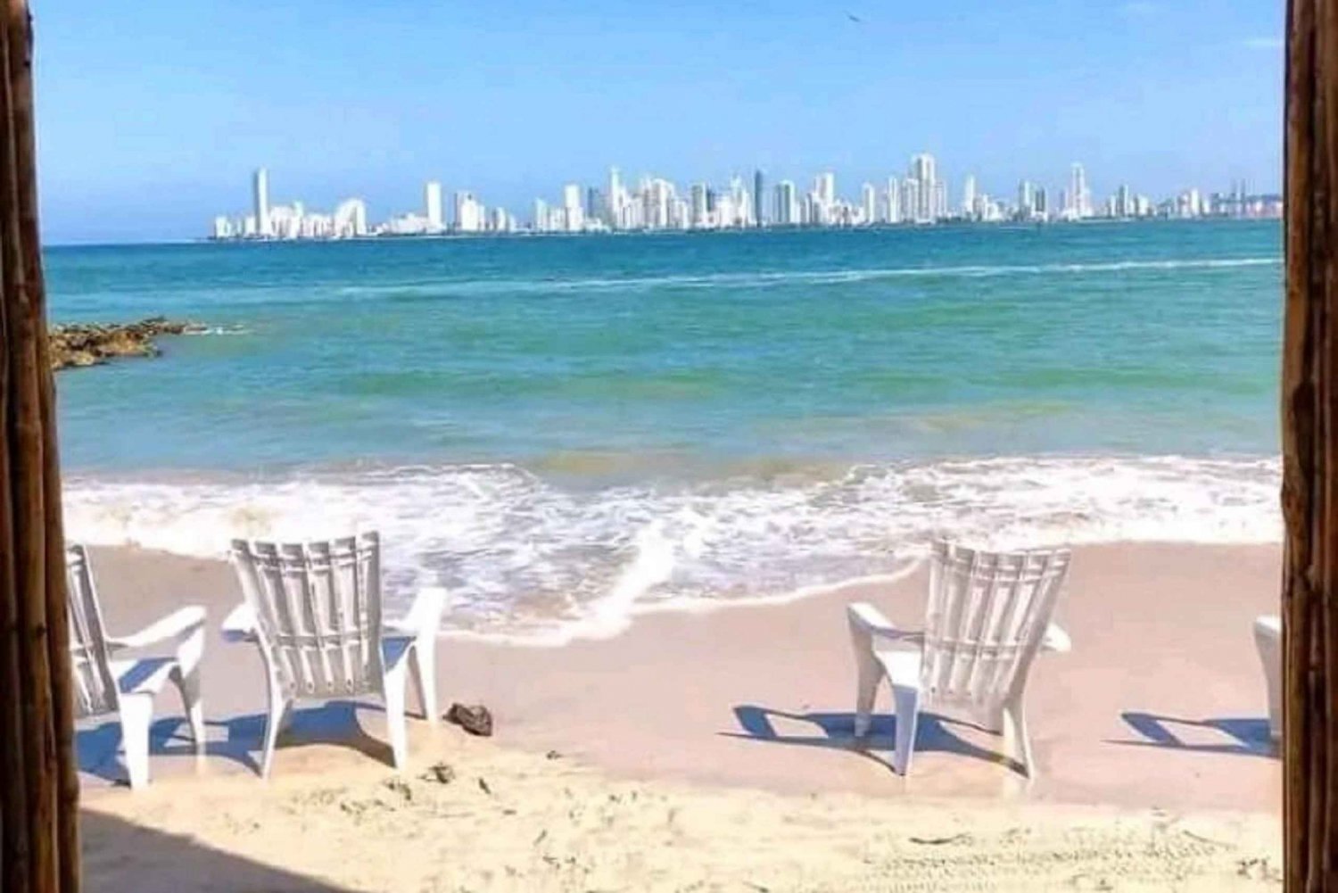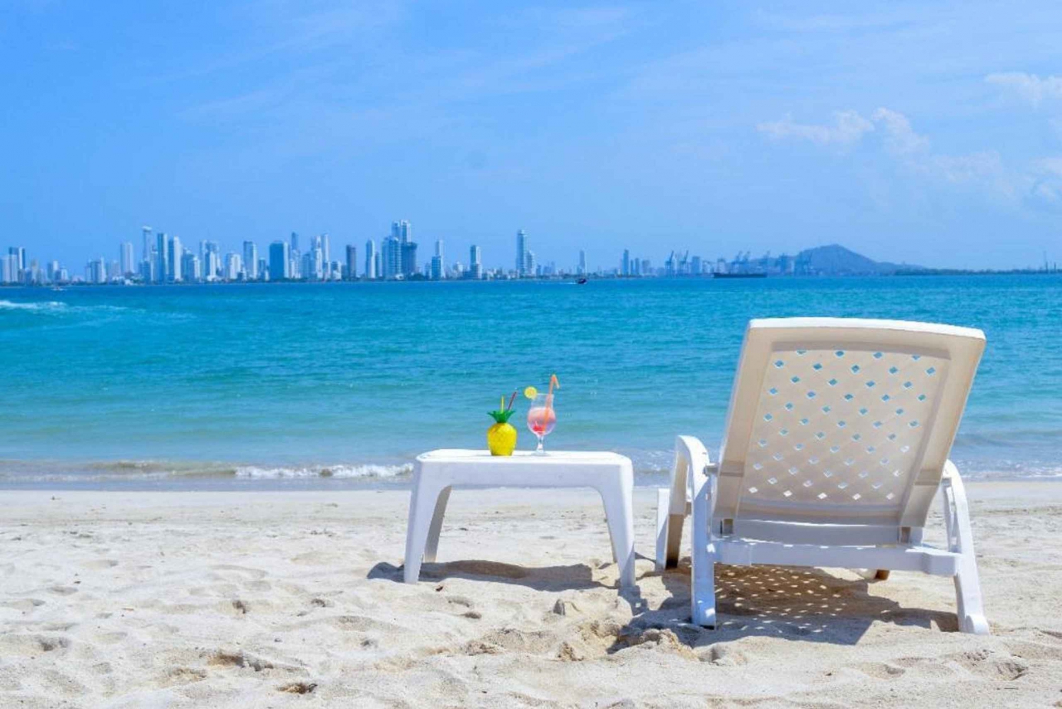 L'île est située à 5 minutes de Cartagena en bateau, sable blanc et eau cristalline, prise en charge à l'hôtel, déjeuner typique, transport aller-retour, pas de taxe de bateau ni de taxe de séjour.