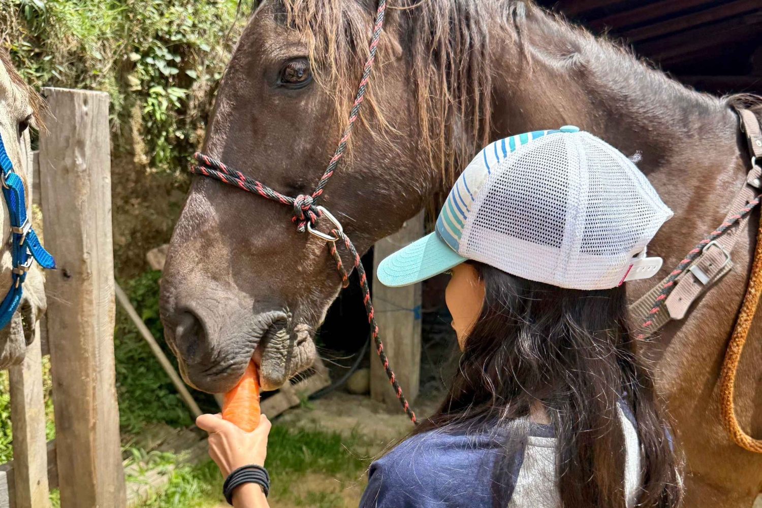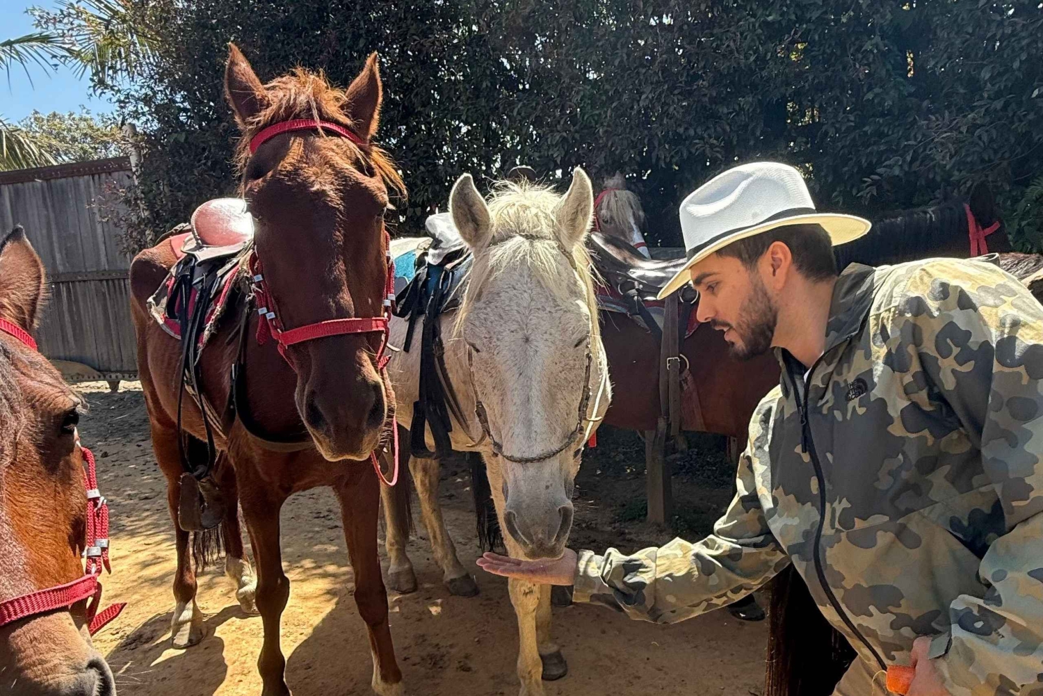 Halvveis på turen tar vi en pause for å slappe av og nyte en drink, for eksempel en øl eller vann, mens du beundrer utsikten over San Nicolás-dalen. I tillegg får vi et spesielt øyeblikk: Vi skal mate hestene med gulrøtter eller epler som er inkludert i turen, og skape et bånd med dyrene og vise respekt for naturen mens vi gir dem en velfortjent hvile.