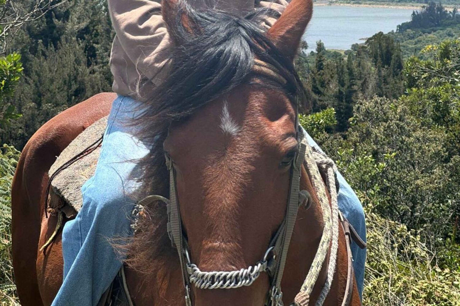 4. Você começará a atividade de cavalgada que durará aproximadamente 2 horas, onde observaremos das montanhas a cidade de La Calera, o reservatório de San Rafael e a vegetação nativa dos Andes.