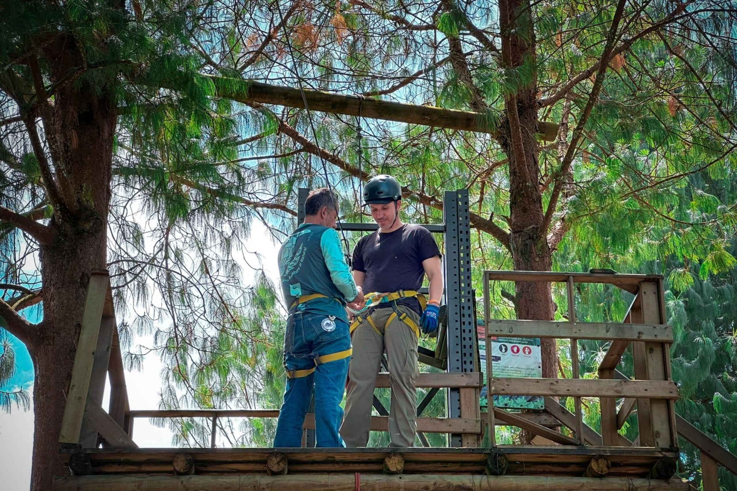 Depois de explorar a cidade de La Ceja, nossa próxima parada é o nosso principal destaque! É aqui que teremos nossa experiência mais incrível e cheia de adrenalina, pegando a tirolesa mais alta e mais longa de toda a Colômbia, com 1.000 pés de altura e 2.200 pés de comprimento, onde você pode ver até 5 cachoeiras, uma após a outra, até chegarmos ao outro lado da montanha e, em seguida, faremos uma caminhada de alto nível até a cachoeira mais impressionante de todas, Você terá a opção de subir de volta por uma trilha de ferrata ao lado da cachoeira, algo de outro mundo!