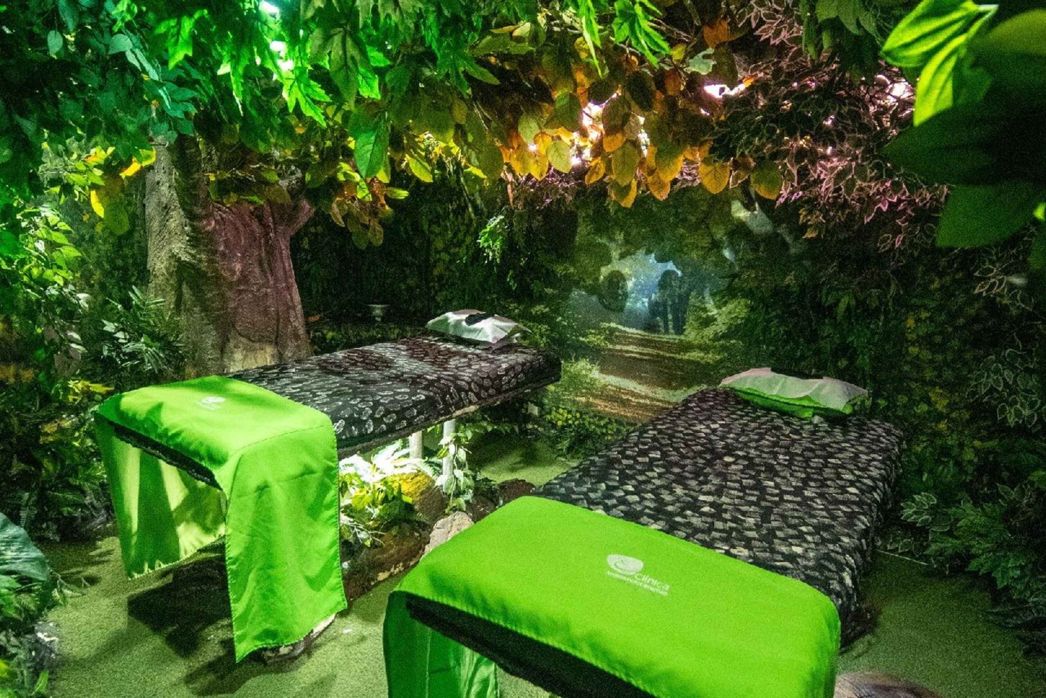 Em seguida, relaxe durante uma massagem em um de nossos cubículos temáticos no spa. Os temas são inspirados na Amazônia e no Temazcal, que representam a beleza da América do Sul. As salas de massagem inspiradas na floresta tropical e nas cavernas antigas ajudarão a aliviar o estresse e a inspirar o relaxamento.
