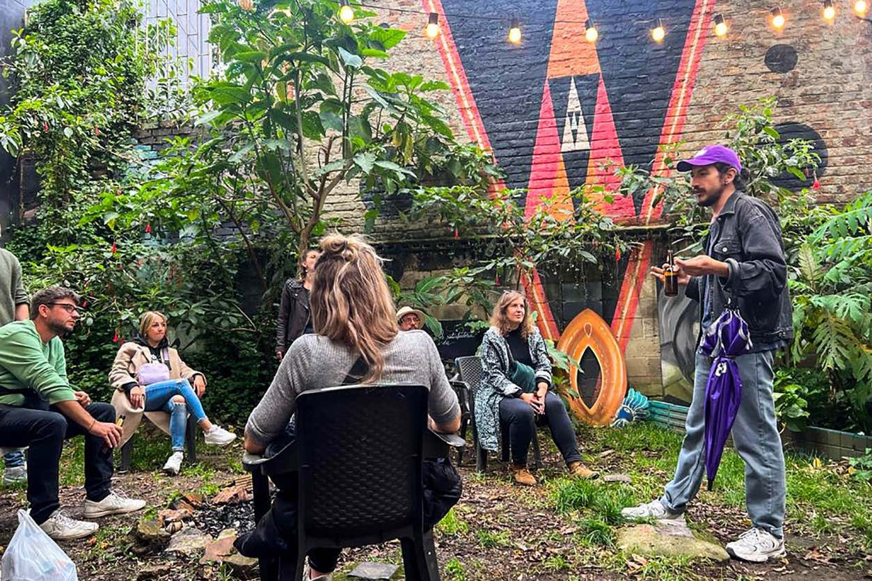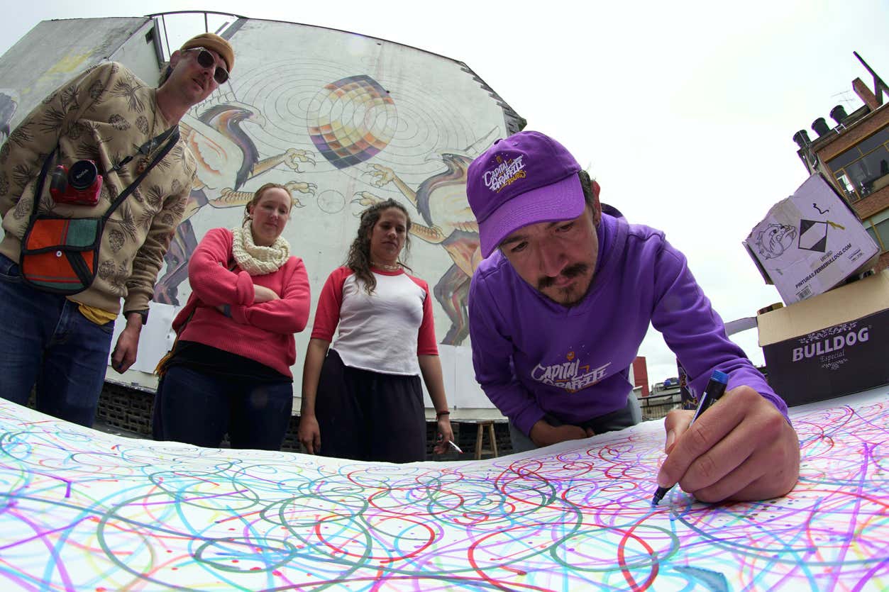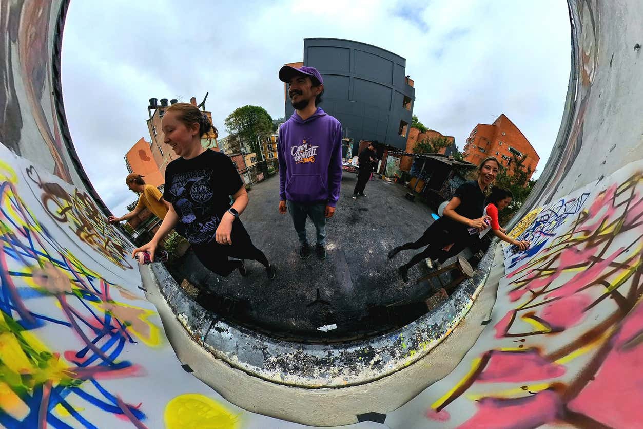 В удобное для вас время мы встретимся на улице 26b в районе Ла Макарена, чтобы начать этот частный мастер-класс по граффити в Боготе. Сначала мы пройдем в культурный центр, расположенный в районе Ла Макарена. Там мы обсудим городское искусство Боготы, чтобы понять важность этих фресок в колумбийской столице.